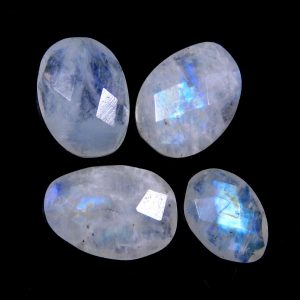 Natural Rainbow Flashy Moonstone Rose Cut Gemstone Lot 5 pcs